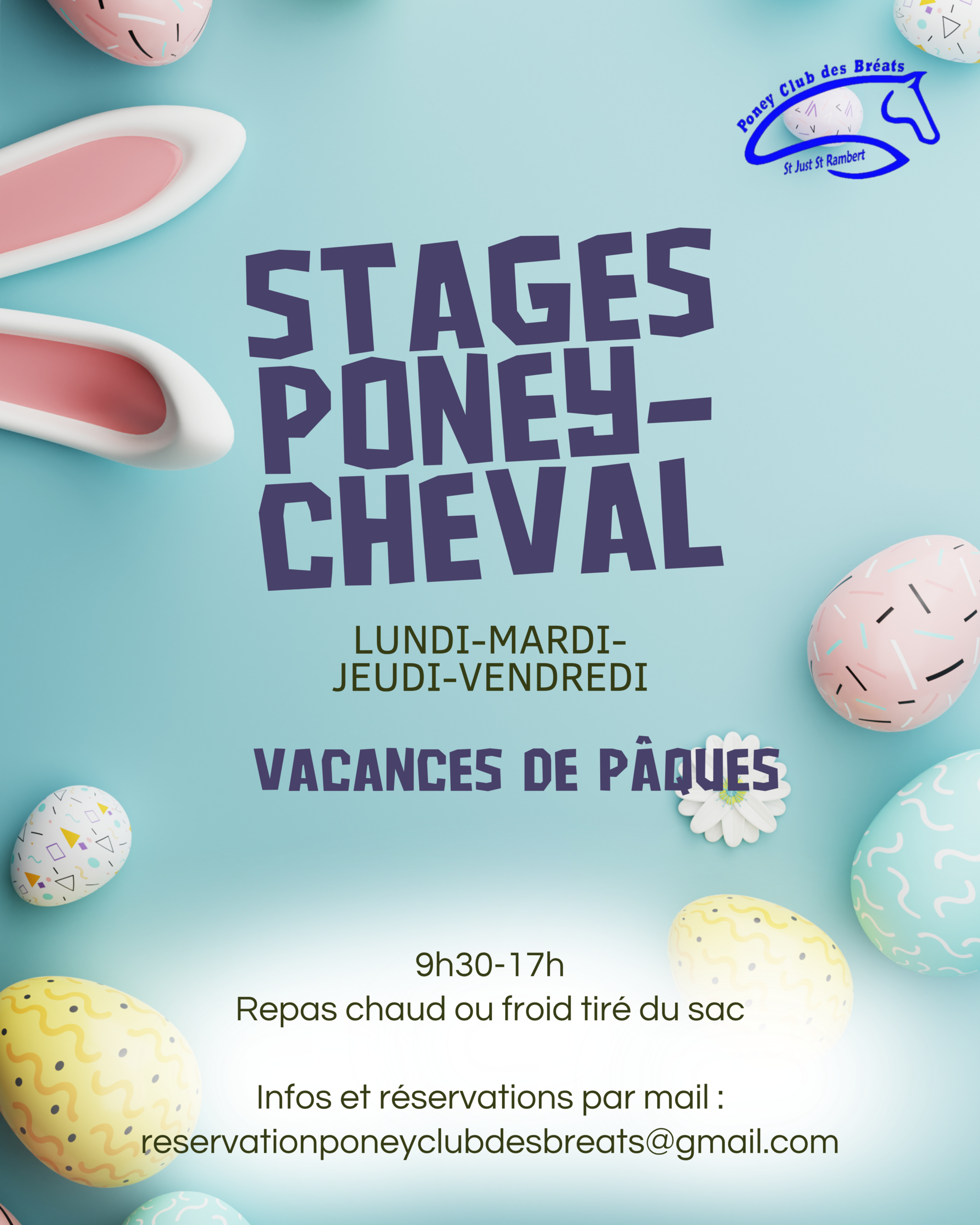 Bienvenue au Poney-Club des Bréats, un lieu chaleureux où la passion des chevaux et des poneys se vit au quotidien. Que tu sois débutant ou cavalier expérimenté, nous t’offrons un cadre idéal pour progresser, t’amuser et partager des moments inoubliables. Grâce à des cours adaptés à tous les niveaux et des activités variées, tu pourras développer tes compétences équestres tout en profitant d’une ambiance conviviale et familiale. Rejoins-nous et découvre la complicité unique que l’on peut tisser avec nos compagnons équins !